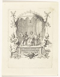 Figuren rond een kijkkast met een…