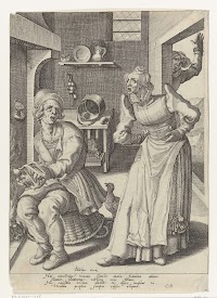 Een kijvende vrouw en een spinnende…