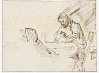 Oosterse geleerde aan een tafel