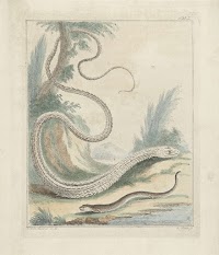 Snake and lizard by a bush