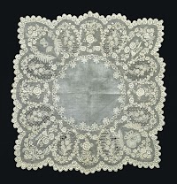 Zakdoek van kantborduurwerk op…