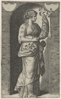Muze Calliope met guirlande staand…