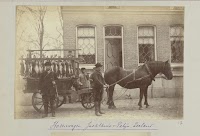 Boerin met juk met melkemmers op de…