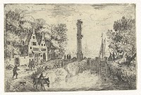 Dorpsgezicht met een sluis