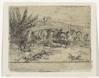 Landschap met twee liggende leeuwen