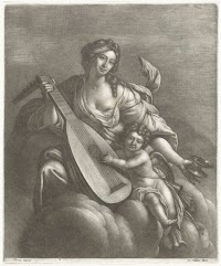 Vrouw met een lier zwevend boven…