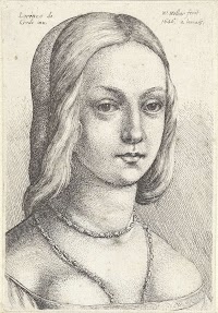 Vrouw met plooikraag en…