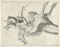Zwevende figuur met twee roofvogels