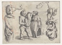 Vrouw en mannelijk monster met kan…
