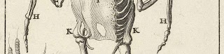 Het skelet van een hond, schuin van…