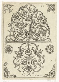 Ornament met putti, hybride figuren…