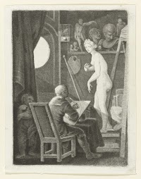 Man maakt een ets in zijn atelier…