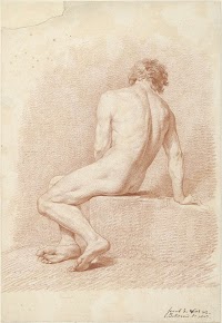 Zittend mannelijk naakt, op de rug…