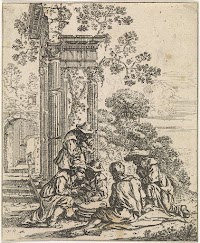 Ruïne met kaartspelers
