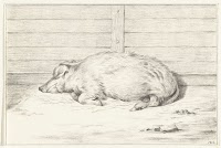Liggend varken, naar rechts, tegen…