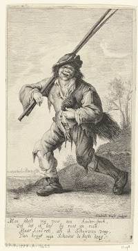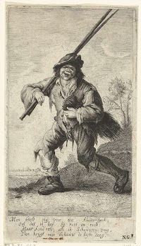 Boerin met brandhout onder haar arm