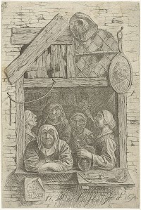 Vijf vrouwen in een venster