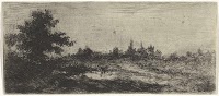 Landschap met kerktorens in de…