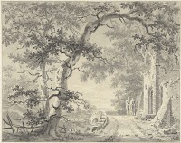 Landschap met zittende man met hond…