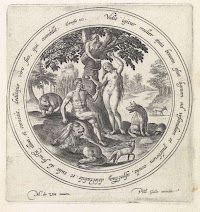 Adam en Eva omringd door dieren in…
