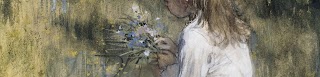 A Girl with Flowers on the Grass