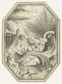 Landschap met stenen brug in…