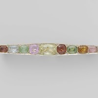 Brochette van goud met negen gekleurde edelstenen, Fa. Kellenbach & Co, c. 1925