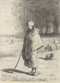 Schaapherderin, leunend op een stok