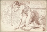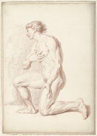 Mannelijk naakt, knielend, naar…