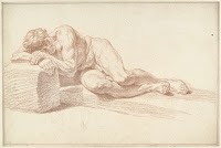 Mannelijk naakt, liggend, de armen…