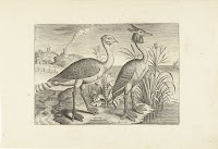 Twee waadvogels in een landschap