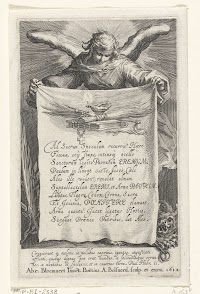 Engel houdt doek vast waarop titel…