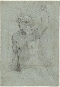 Zittend mannelijk naakt, de armen…