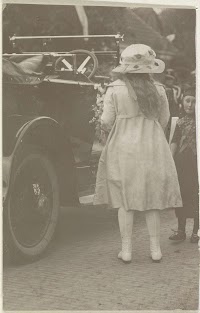 Prinses Juliana naast een auto