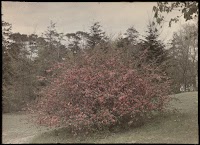 Een rood bloeiende struik in een…