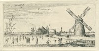 Schaatsers op het ijs bij een molen…
