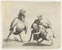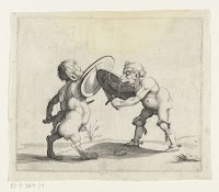 Twee vechtende groteske figuren