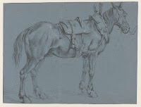 Staand paard, schuin van achter,…