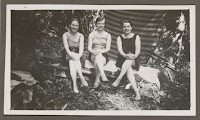Drie vrouwen in zwemkleding zittend…
