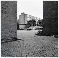 Woonerf met flatgebouw