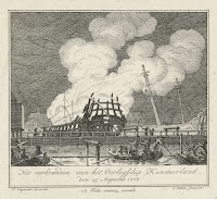 Oorlogsschip Kennemerland in brand,…