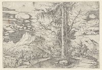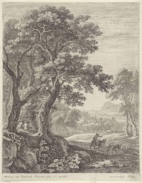 Landschap, met onder een boom een…