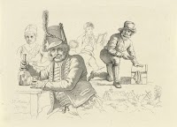 Huzaar met glas en fles aan een…