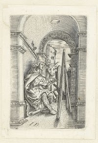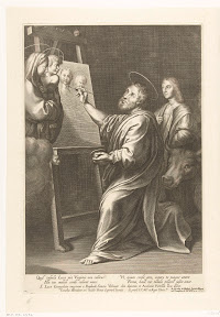 Sint Lucas voor een schildersdoek