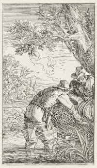 Twee vissers met een fuik