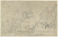 Studieblad met jagers, paarden en…
