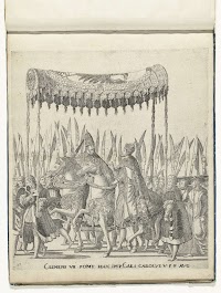 Personen knielen voor keizer Karel…
