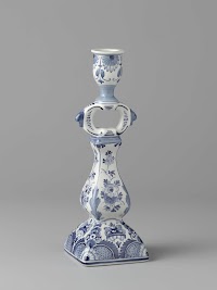 Kandelaar met blauwwitte decoratie