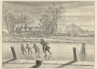 Winterlandschap met vier schaatsers