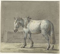 Staand paard in een stal, naar…